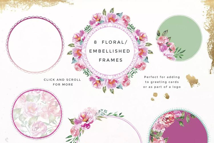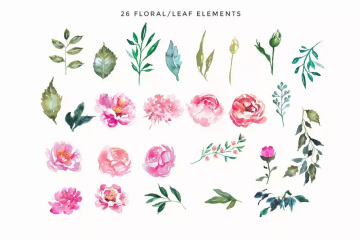 手绘牡丹花水彩剪贴画是一套有26款高品质手绘水彩元素加上34个协调设计元素,你可以使用预先制作的框架和花环以及有图案的纸张来创建属于你自己的设计。