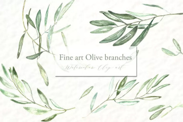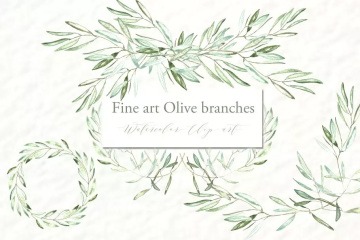 橄榄枝美术水彩剪贴画 Olive branches. Fin