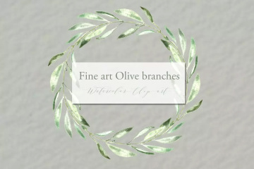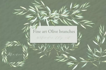 图穷联素材库 » 橄榄枝美术水彩剪贴画 Olive branches. Fin
