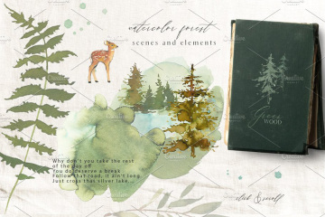 图穷联素材库 » 绿色森林水彩图案剪切画 Forest – Green Wat