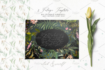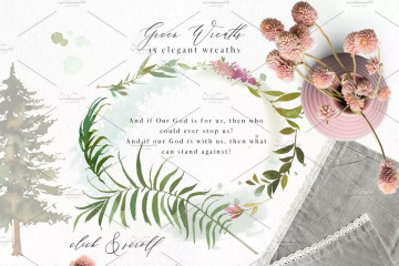 绿色森林水彩图案剪切画集合,以爱与激情创造的艺术品。它包括超过450个高质量的手工制作图像文件,有树叶和花,树和动物,图标和框架,字母,安排,图案,背景和模板。