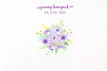 水彩紫丁香花束 Watercolor Lilac Peony