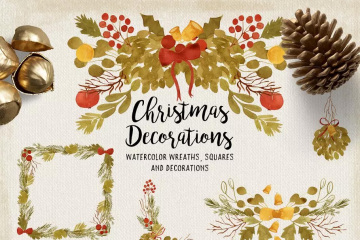 水彩画圣诞装饰品 Watercolor Christmas