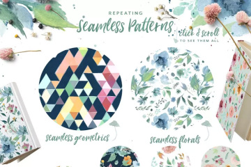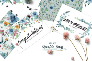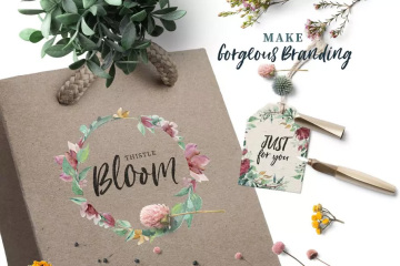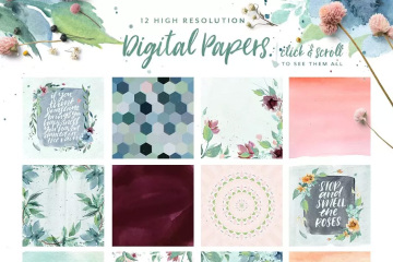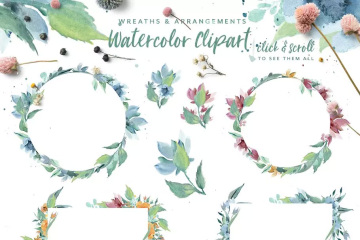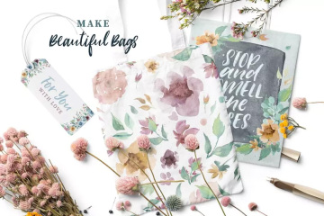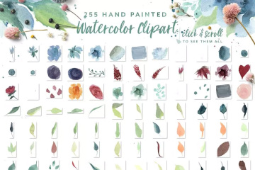 225个独立的水彩剪贴画元素(花、叶、浆果、茎等)。