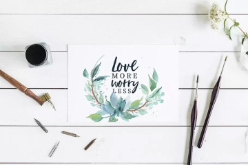 图穷联素材库 » 手写英文字体 手绘水彩花卉剪贴画 Loving Saskia