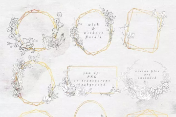 精致美丽的绘制花卉和图案,水彩形状和纹理,金色花卉几何框架。使用这款美丽精致美感水彩花卉图案合集为您的艺术品增添一丝优雅和品位。一系列华丽的手绘花卉与水彩形状相结合,为您提供一个令人惊叹出色可定制的系列。