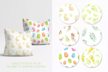 6个JPEG格式的无缝图案3000x3000px和PNG格式,透明背景。