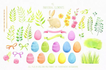 41个JPEG和PNG格式的独立设计元素,透明背景。
