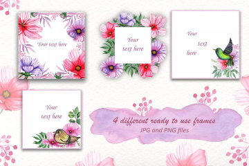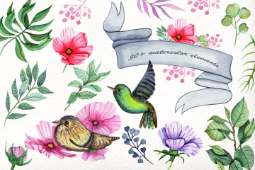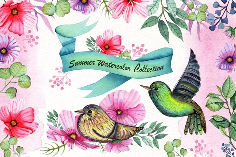 图穷联素材库 » 夏季花卉鸟儿水彩系列插画