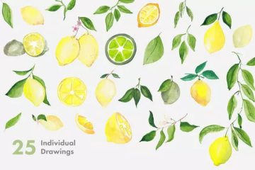 图穷联素材库 » 柠檬 酸橙手绘水彩插画 Lemons Limes Wate
