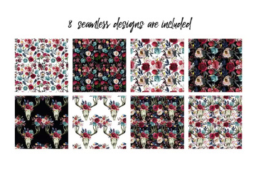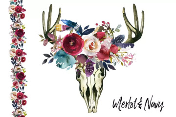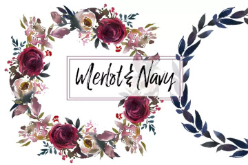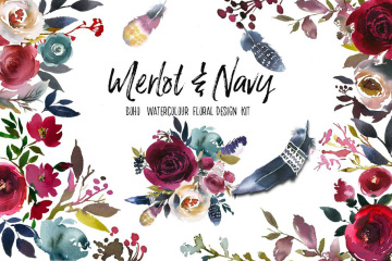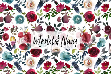图穷联素材库 » 梅洛红 海军蓝水彩花卉 Merlot Navy Boho