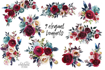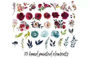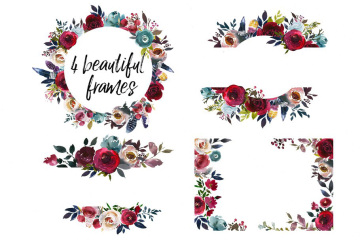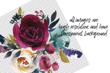 这组梅洛红&海军蓝水彩花卉设计素材包可用来做你的任何设计或剪贴簿项目,比如请柬,墙壁艺术,印刷品项目,模板,照相簿,卡片,纺织品装饰等项目。