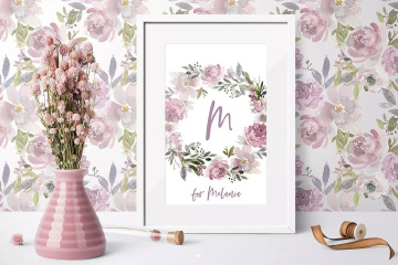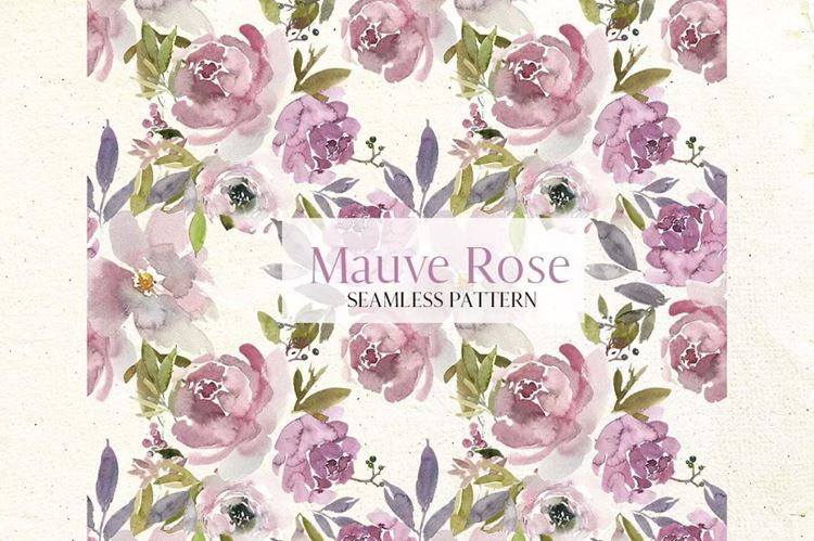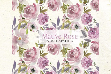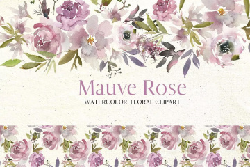 淡紫色玫瑰水彩花卉剪贴画 Mauve Rose Waterc