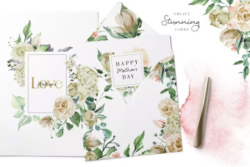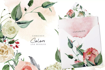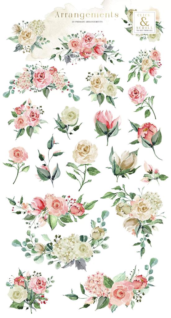 图穷联素材库 » 胭脂红玫瑰水彩剪贴画 Creme Rose Waterco