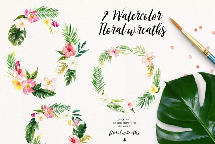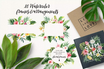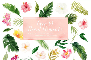这是一个关于夏天的合集包括了129个PNG(300dpi)手绘水彩图形,每个图形上有一个透明的背景。元素包括了水彩花卉、热带叶子,花环,鲜花花束以及冰棒,热带的动物和植物,夏季水果,这将完全适合夏季项目。