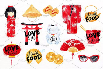 图穷联素材库 » 中国水彩传统符号 Asia Set