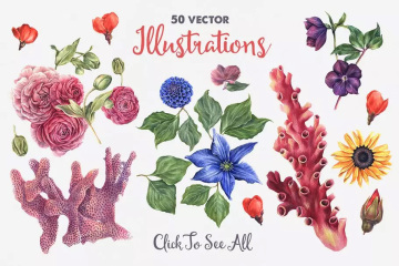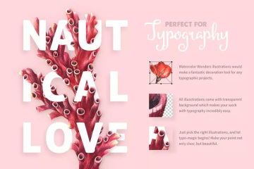 这组合集可用于设计婚礼请柬,服装设计,贺卡,包装,文具,标志,数字演示——海洋花卉是视觉上的一个很好的补充。