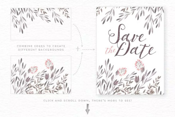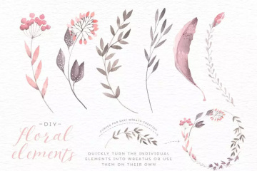 这些独特的手绘花卉边框、边缘和背景将为您大的设计项目增添一抹精致的水彩!所有的花和叶子都是分开的,您也可以创建自己的花卉组合。