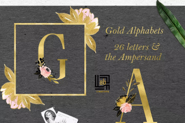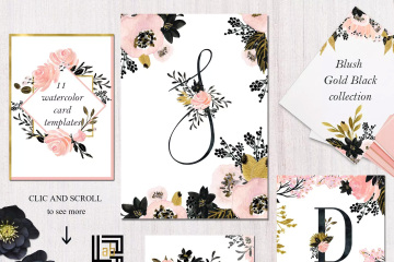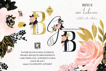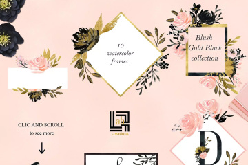 图穷联素材库 » 胭脂黑金水彩花卉剪贴画 Blush Gold Black.