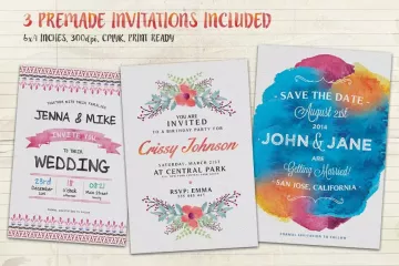 所有的元素都有300dpi的高分辨率,您还可以得到3个预先制作的邀请函模板!