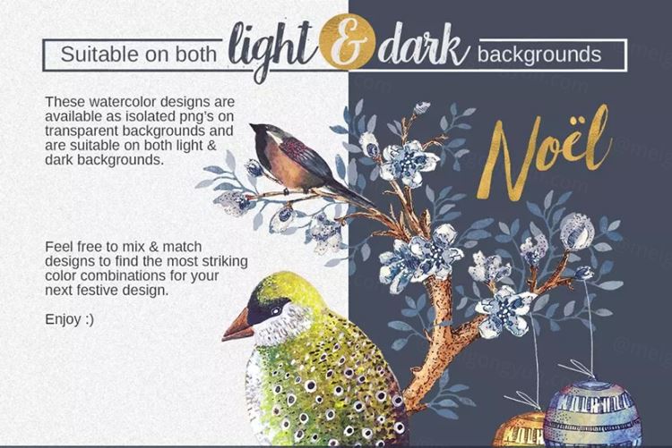 这组元素合集包括了140+独立的png元素,你可以自由地混合和匹配无尽的节日元素组合,你可以使用在设计圣诞贺卡,节日文具,海报或邀请函等其他更多你能想到的设计项目。