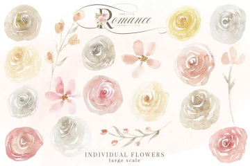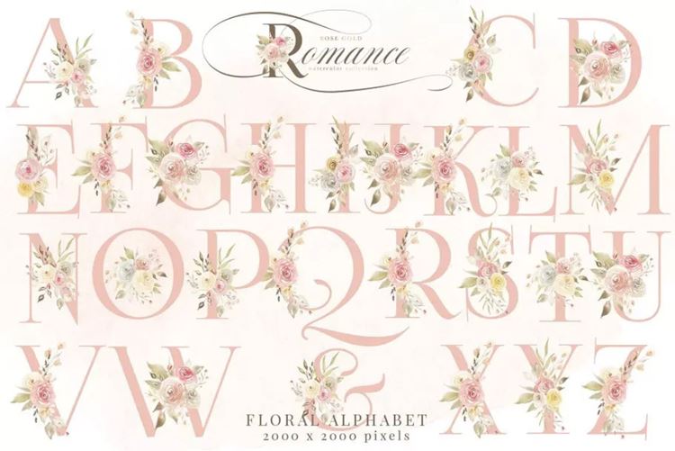 图穷联素材库 » 玫瑰金浪漫水彩花卉剪贴画 Rose Gold Romance