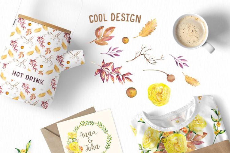 这些元素是设计婚礼请柬、贺卡和各种商品的理想选择,您可以把图案印在t恤或马克杯上,也可以做一个礼物给朋友或者将漂亮的插图设计在衬衫上。