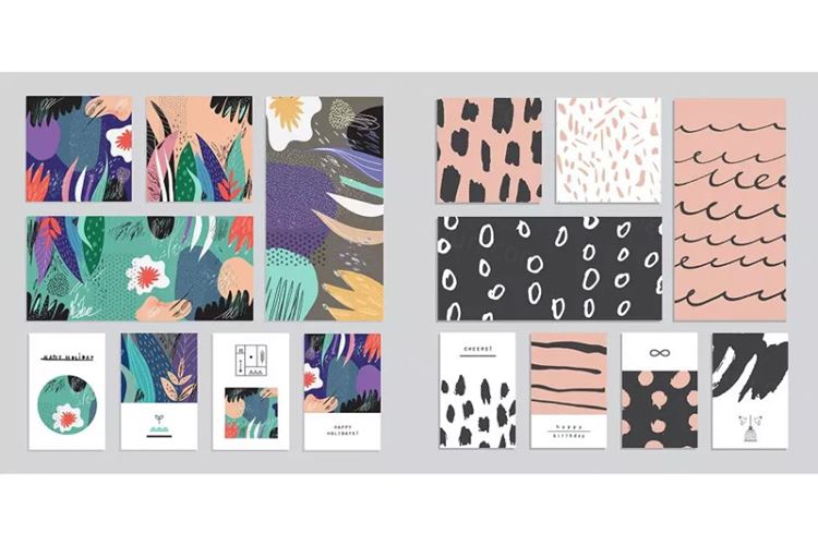 图穷联素材库 » 巨量涂鸦水彩手绘风格卡片/海报/邀请函/header模板!