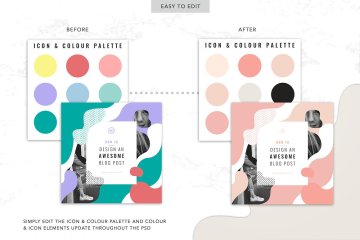 该软件包包含一个颜色和图标调色板,带有链接的智能对象,可以快速轻松地进 只需编辑调色板,所有颜色和图标都会在整个包中更新。