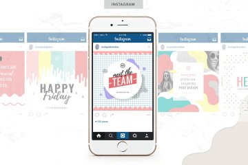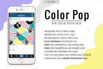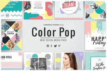图穷联素材库 » 孟菲斯多彩社交媒体PSD素材模板 Mini Color Pop Social M