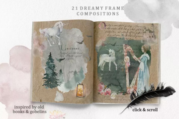 这组梦幻仙女水彩手绘插画素材合集由中世纪的图形、书籍构成。