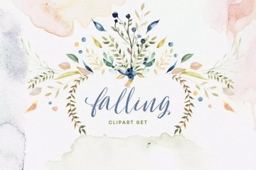 图穷联素材库 » 水彩花卉剪贴画Falling Watercolor Clip