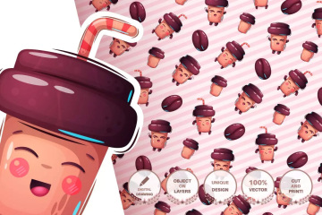 可爱清新又去得卡通咖啡无缝背景底纹纹理集合-AI,EPS,J