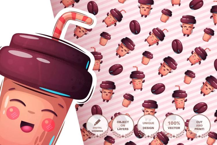 可爱清新又去得卡通咖啡无缝背景底纹纹理集合-AI,EPS,JPG,PNG,PSD,1个矢量“可爱舞蹈咖啡”文件(EPS10 + AI)格式文件(因此易于自定义颜色,混合和匹配图案,调整大小和旋转它们,然后轻松应用于任何大小的区域。)