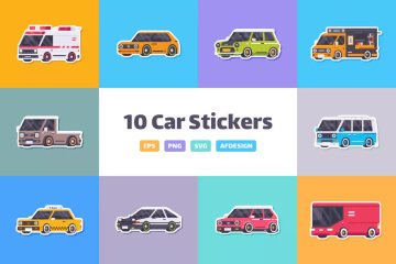 时尚高端可爱清新简约少见矢量卡通车贴大集合,包含平面样式的各种汽车的10个向量。适合直接打印为海报,T恤,马克杯或不干胶标签,以附加到您喜欢的物品上。