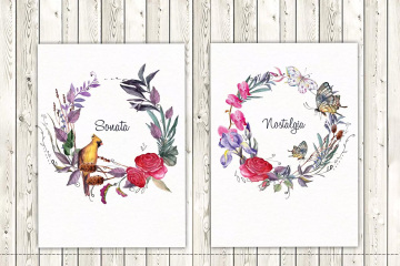 图穷联素材库 » 水彩花环插画 Watercolor wreaths vol.