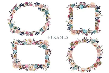 图穷联素材库 » 暗蓝色薄雾玫瑰波希米亚式水彩花卉 Dusk Blue Mi