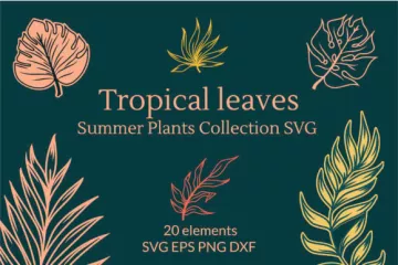 热带树叶夏季植物图形素材,使用此文件,您可以制作:贴花,T恤衫,手提袋,杯子,漱口杯,邀请函设计,剪贴簿,标志制作,装饰品,贴纸等。将此设计用于您的数字项目。下载中包含SVG、DXF、EPS、PNG文件。