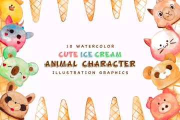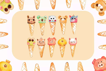 图穷联素材库 » 清新时尚夏天夏季冰激凌动物人物手绘水彩矢量插画背景底纹纹理集