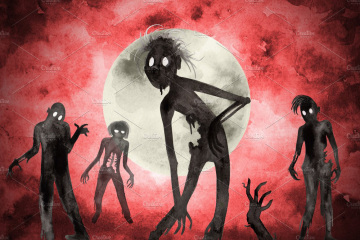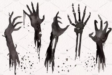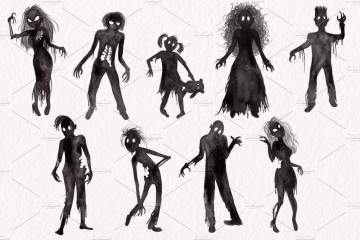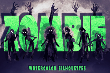 图穷联素材库 » 手绘水彩万圣节僵尸剪影水彩画