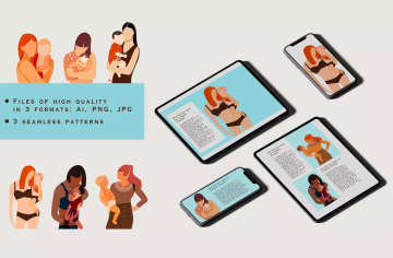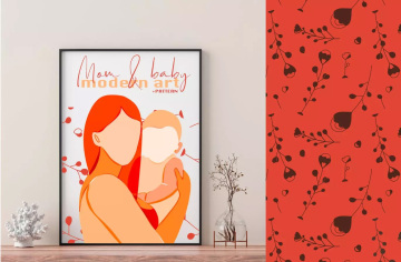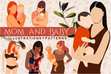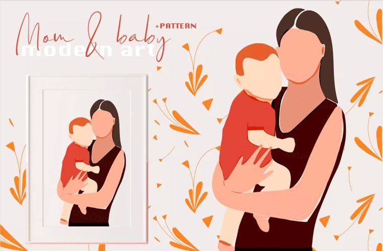 图穷联素材库 » “妈妈和宝宝”现代艺术矢量插画+无缝背景底纹纹理集合