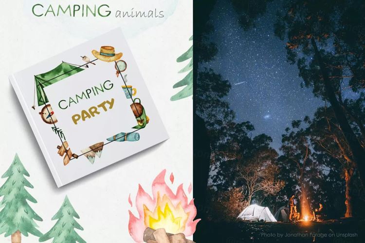 收集项目非常适合创建邀请卡,野营派对,婴儿送礼会,贺卡,纸张,封面,包装,织物,博客,徽标,儿童聚会,海报,DIY项目等。您的想象力是无限的!