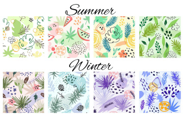时尚高端优雅简约抽象多用途季节性矢量花卉插画图案大集合,具有无缝图案和JPG预览的16个EPS10文件