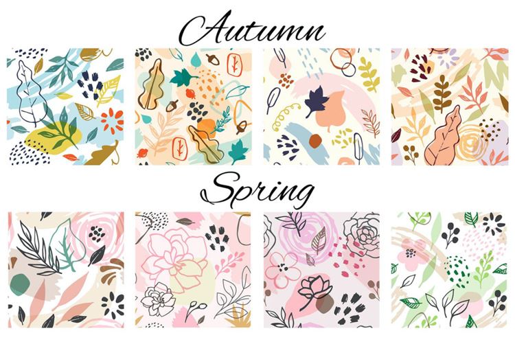 图穷联素材库 » 时尚高端优雅简约抽象多用途季节性矢量花卉插画图案大集合