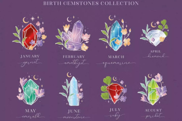 这是华丽的诞生石珍贵和半宝石,珠宝和矿物剪贴画插图的集合。宝石包括钻石,紫水晶,红宝石,祖母绿和海蓝宝石。多面形状包括心形,圆形,椭圆形,正方形和矩形。您可以使用此剪贴画来创建自己的贺卡,剪贴簿艺术作品,装饰品,拼贴画,礼物标签,标签,贴纸等。