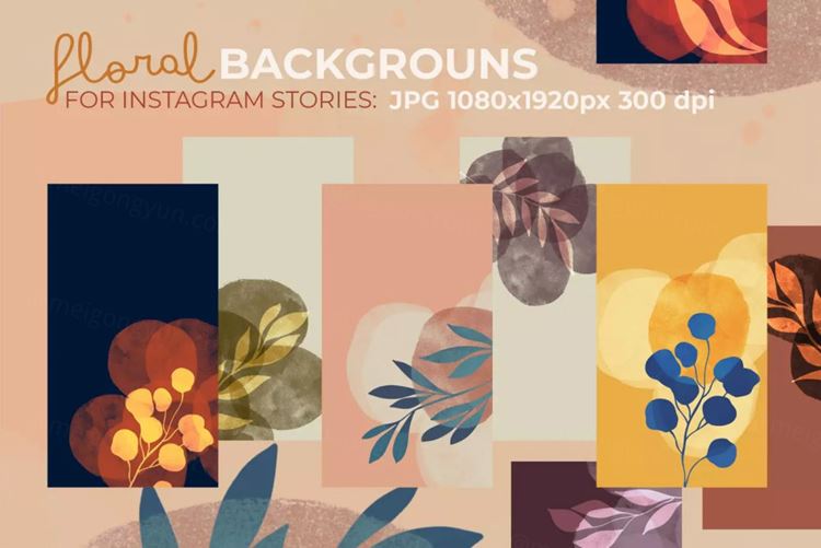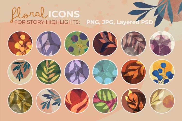 图穷联素材库 » 抽象花卉Instagram故事亮点和封面模板下载(JPG,P