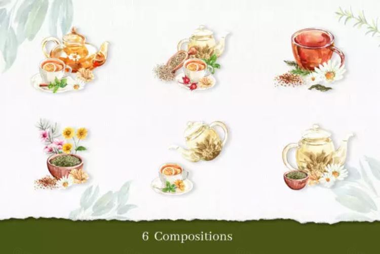图穷联素材库 » 健康养生茶主题水彩插画素材