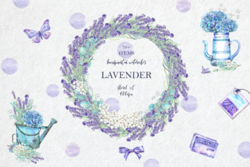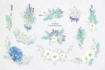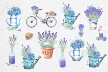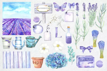 图穷联素材库 » 薰衣草水彩花卉插画套装