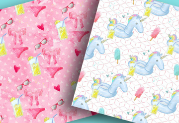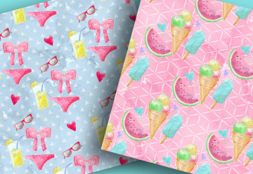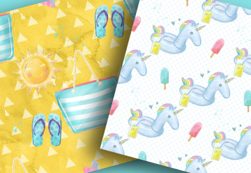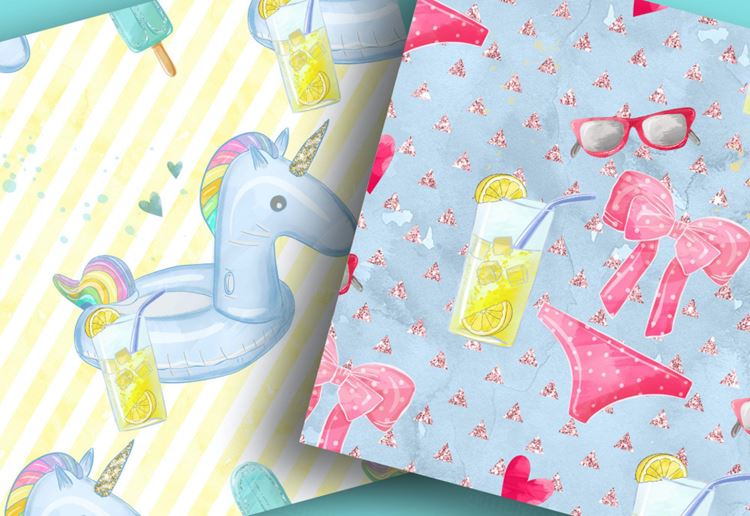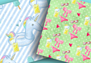 图穷联素材库 » 夏季时光水彩数码纸图案设计素材 Summer Time di