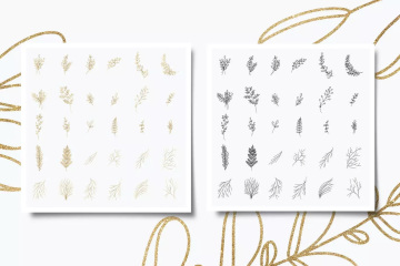图穷联素材库 » 空灵的水彩形状 金色叶子元素背景图素材